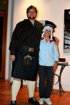 Wenn Sie nicht gerade ein Basketballscout auf Spielersuche sind, kann ich Ihnen versichern, mit 1.93 ist man „groß“. Mein Mann ist eins neunzig, und mein Sohn (neben mir auf dem Foto) ist eins fünfundneunzig. Mein Sohn (auch als Fantasyautor Sam Skyes bekannt – ja, ich habe eine Schwäche für den Namen Sam) ist allerdings nicht gebaut wie Jamie. Jamie ist gebaut wie mein Mann, ein Basketballspieler, kein Footballspieler. Ich mag hochgewachsene, sehnige, rothaarige Männer. Also ... ist Jamie so ein Mann. Sie können gern jeden beliebigen Männertyp bevorzugen – die Geschmäcker sind ja bekanntlich verschieden --, aber Jamie sieht vermutlich anders aus.