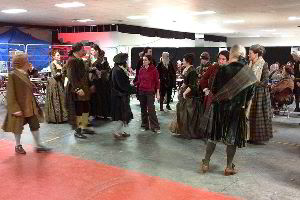 Tja, gute Frage. Zunächst einmal: „Outlander-World“ ist riesig. Es ist eine umgebaute Fabrikruine, und wenn man hindurch geht und die Verwandlung sieht, kommt man aus dem Staunen nicht heraus. Aber ich erzähle Ihnen die Einzelheiten meiner Führung später – ich habe nur sehr wenig Zeit und möchte Ihnen wirklich von meinem Auftritt erzählen. Was ich sagen wollte, als ich die Größe des Filmkomplexes erwähnt habe, ist, dass es dort zwei große Studios gibt – und in einem ist Colums Halle in Leoch aufgebaut.