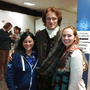 Kleine Bemerkung, die mein Mann am Rande gemacht hat (er war Sonntag Abend mit auf der Party, als wir das deutsche Selfie gefilmt haben und ist ja selbst wahrlich kein Zwerg): "Mann, ist dieser Sam Heughan ein Hüne; er hat ja quasi sein eigenes Gravitationsfeld."