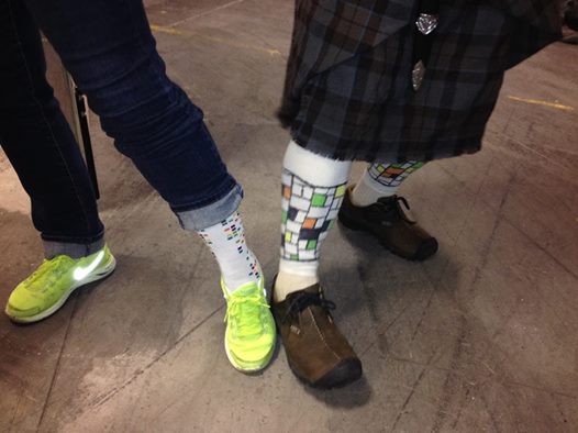 Ich hatte beim Setbesuch zufällig ganz ähnliche Socken an; das Foto zeigt Gary und mich im Partnerlook :-)