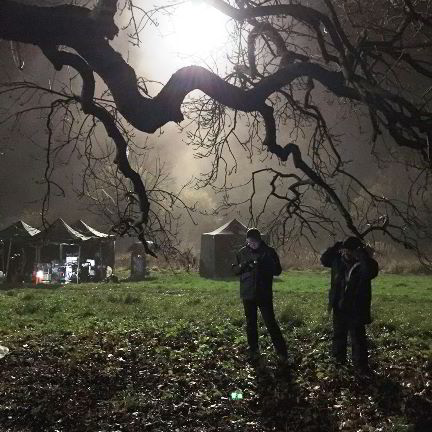 Freitag haben wir im Freien gefilmt – im Hellen und im Dunklen. Langer Tag und kalt dazu – aber es hat nicht geregnet! (Das macht so viel aus; es ist OK, wen man friert, aber frieren, wenn man durchnässt ist, ist wirklich elend.) Es waren viele Pferde beim Dreh, und das Zuschauen hat großen Spaß gemacht; sowohl die Pferde als auch die Reiter (viele Profi-Stuntreiter und eine Reihe etwas weniger kunstfertiger, aber tapferer Schauspieler – wie ein Schauspieler, dessen Name ungenannt bleiben soll, zu mir und Anne sagte: „Ich hatte gerade eine Unterredung mit meinen Eiern. Sie haben beide gesagt, 'es wäre uns lieber, wenn Du DAS nicht noch einmal machst.'“) waren toll, die diversten Stunts sind alle gut gegangen, und der Regisseur und der Kameramann haben alles bekommen, was sie wollten.