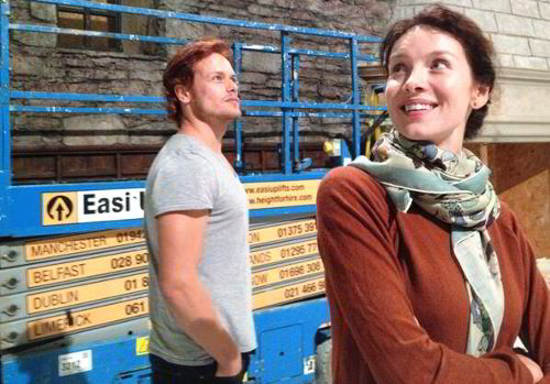 Sam & Catriona bestaunen eine neue Kulisse, November 2013 (Foto mit freundlicher Genehmigung von Sony/Starz TV)